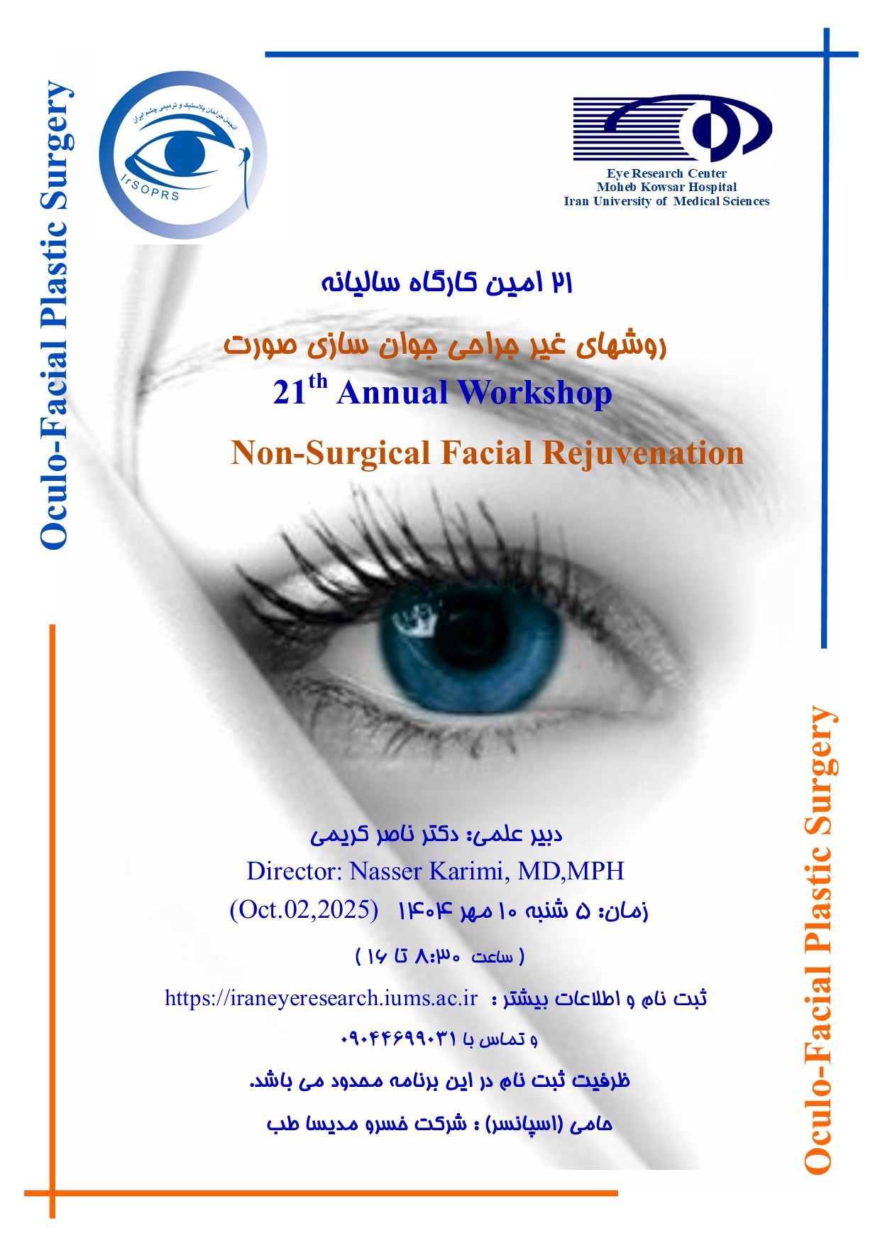 با قدردانی از تمایل شما، جهت شرکت در بیست و یکمین کارگاه سالیانه روش های غیر جراحی جوان سازی صورت، برنامه سمینار و اطلاعات ثبت نام به شرح زیر تقدیم می شود: